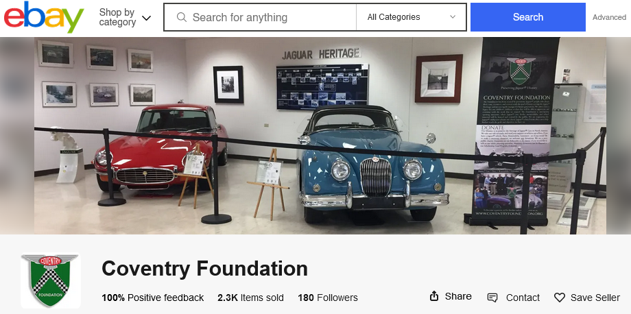 The Coventry Foundation's eBay store has emerged as a thriving platform, catering to the desires of classic Jaguar owners and collectors worldwide. Through this expansion, the foundation not only offers a treasure trove of unique items but also generates vital revenue to support their initiatives and establish an endowment for future scholarships. By indulging in the items available on the eBay store, classic Jaguar enthusiasts contribute directly to the preservation and celebration of these iconic automobiles while paving the way for the next generation of Jaguar enthusiasts to embrace their passion. Visit the store by clicking the button below: