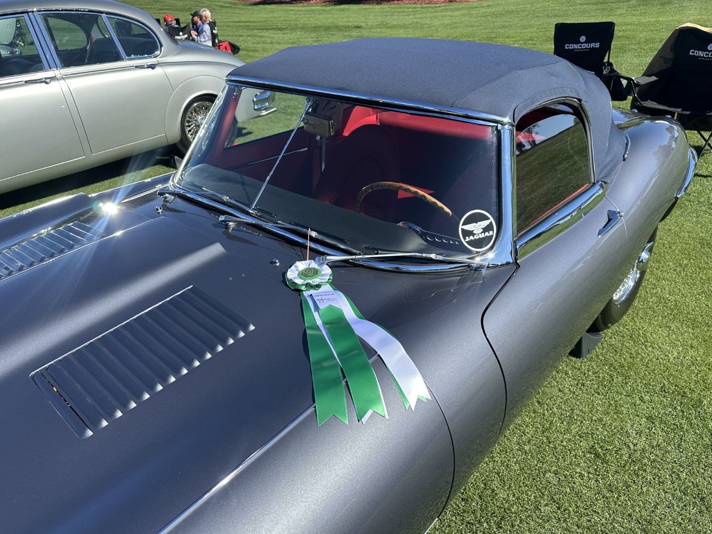 Our 1961 Jaguar E-Type with outside bonnet latches not only held its